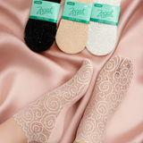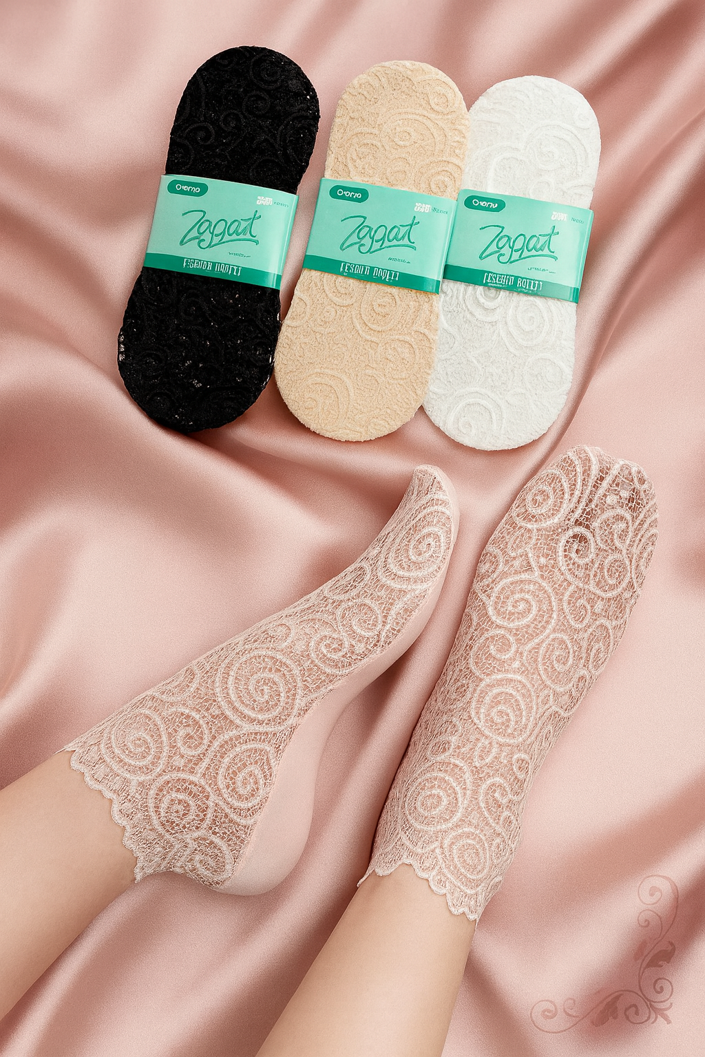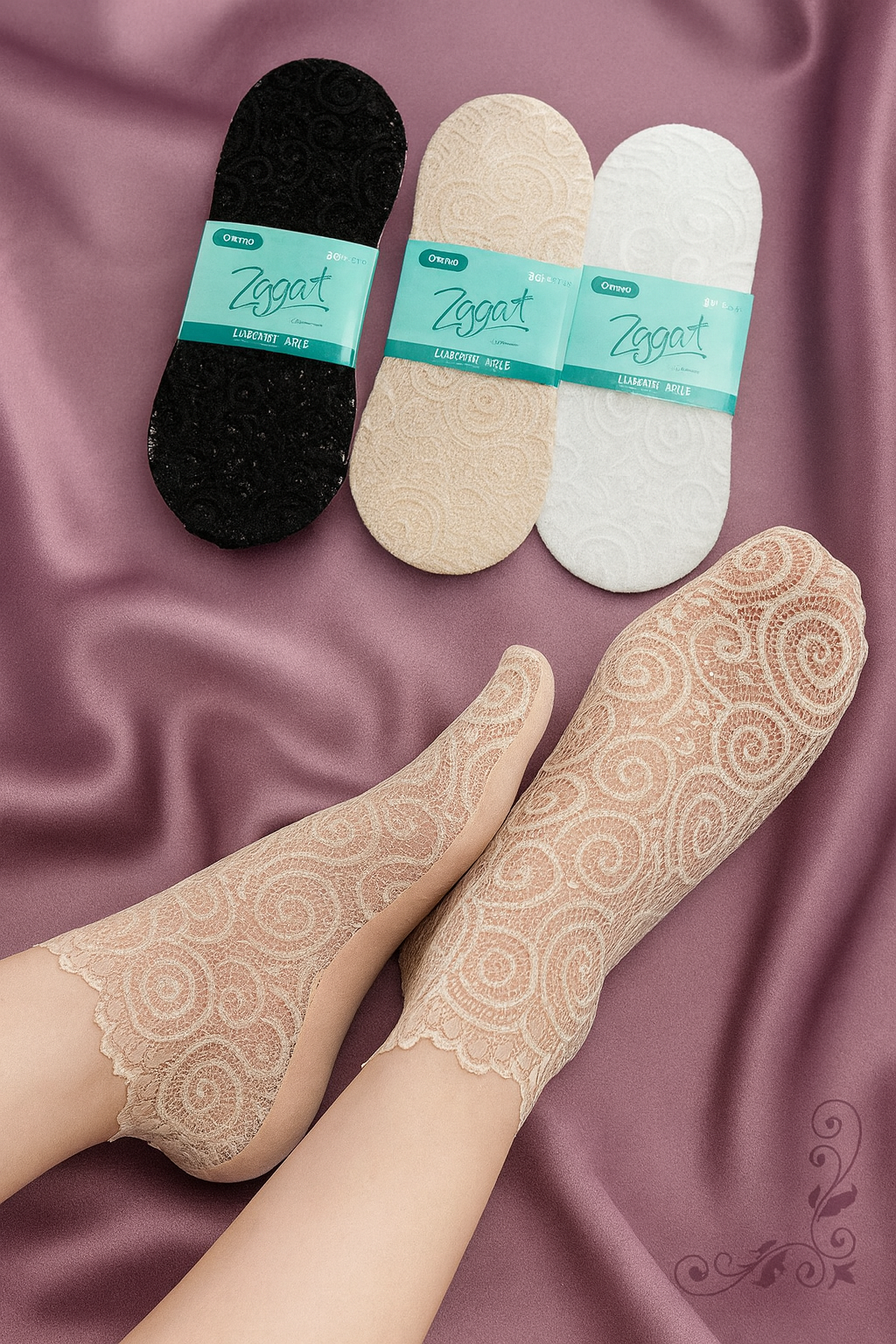 • Diseño: Tipo invisible (no-show) con patrón floral y arabescos. Borde festoneado. Costura plana. Elegante, femenino y cómodo.