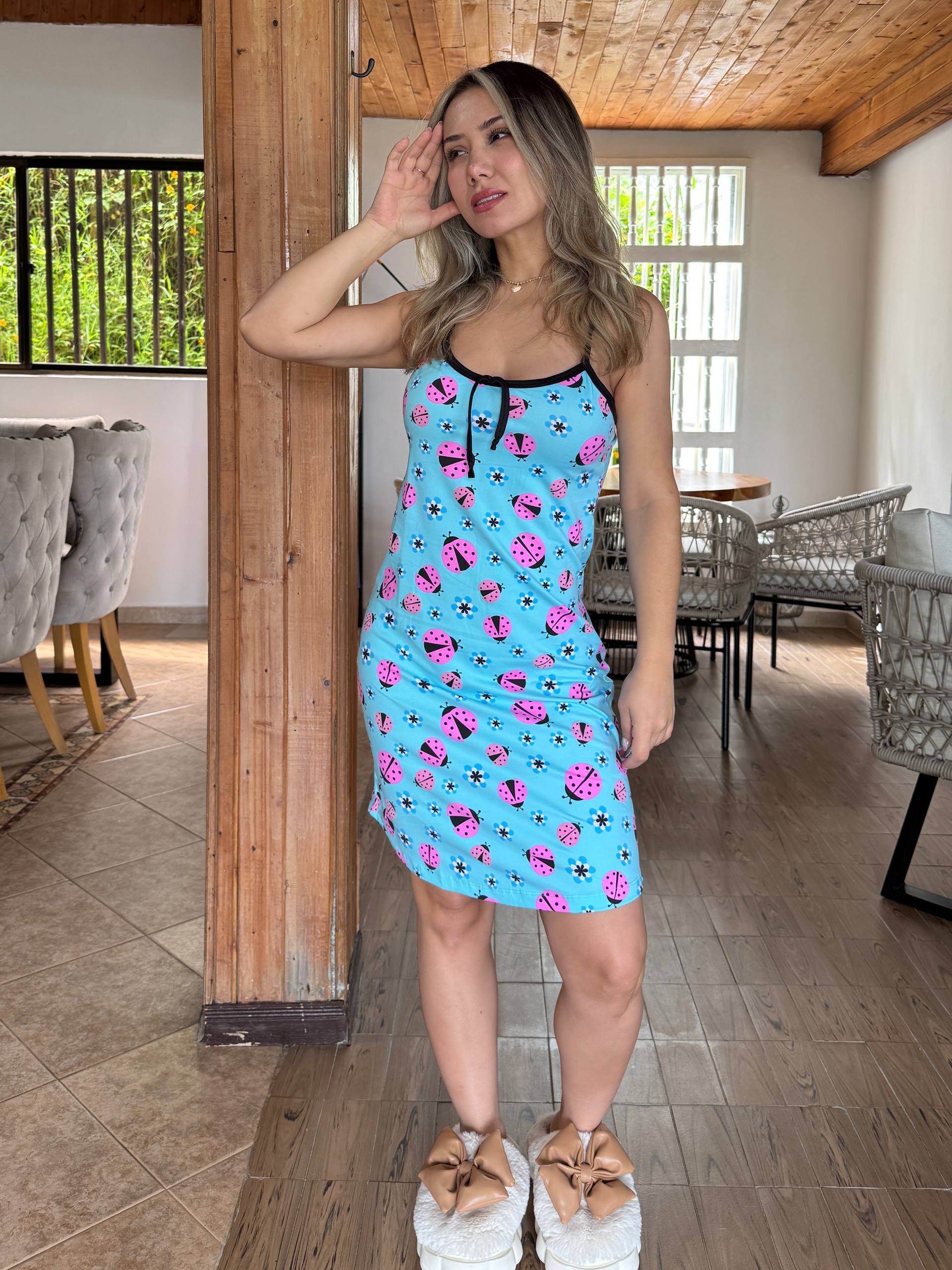 Me encantó esta batola, es muy suave y cómoda para dormir. La tela se siente ligera y fresca, perfecta para las noches cálidas. Además, el diseño con los tirantes finos y el corte corto se ve muy femenino y delicado