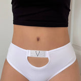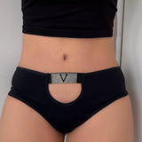 Diseño: Corte tipo culotte con abertura frontal decorativa y pedrería, pensado para un estilo moderno y sensual.