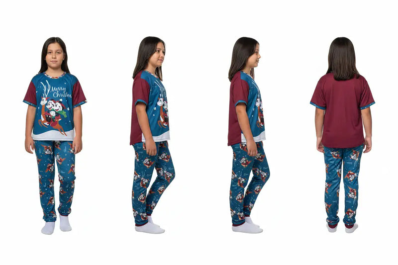 ¡Mi hija estaba fascinada con su pijama de Mickey y Reno! La compramos para que hiciera juego con la de los adultos y los colores son muy nítidos y alegres. La tela es suave y elástica, perfecta para que los niños se muevan con libertad mientras juegan. En el Quindío el clima es templado, y esta pijama no le dio ni mucho calor ni mucho frío. La calidad de la impresión es muy buena; ya la he lavado varias veces y el color se mantiene intacto. ¡Una excelente compra para la época navideña!