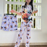Esta pijama ha sido un éxito en casa. A mis hijas les encanta usarla para dormir, se sienten felices de tener sus personajes favoritos. La tela es muy suave, fresca y cómoda, perfecta para las noches cálidas
