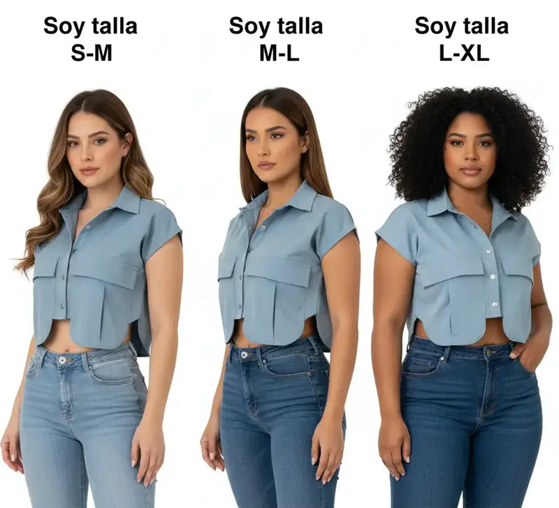 La blusa me encantó, tiene un corte moderno que resalta la figura sin ser ajustado. La tela es suave y fresca, perfecta para los días cálidos. Además, los botones metálicos le dan un toque elegante y diferente.