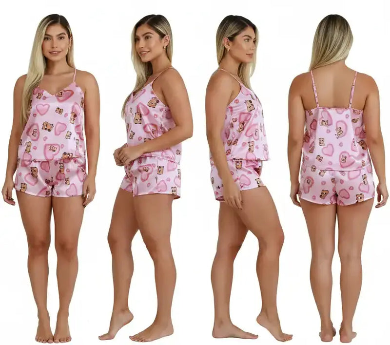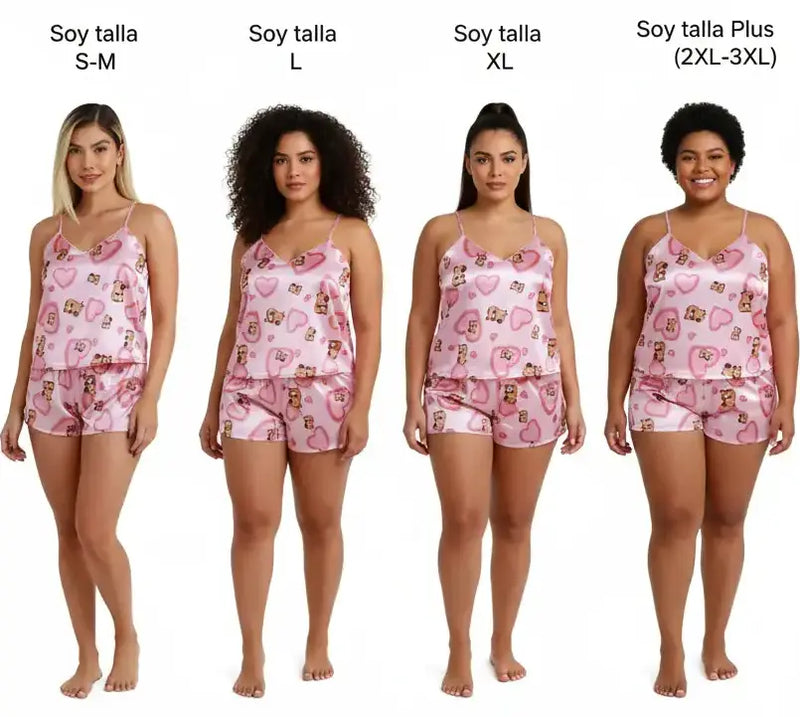 La tela de satín es deliciosa al tacto, no da calor y el color rosado tiene un brillo hermoso. Me gustó mucho cómo queda el short, es cómodo y femenino. Ideal para regalar o para usar en casa.