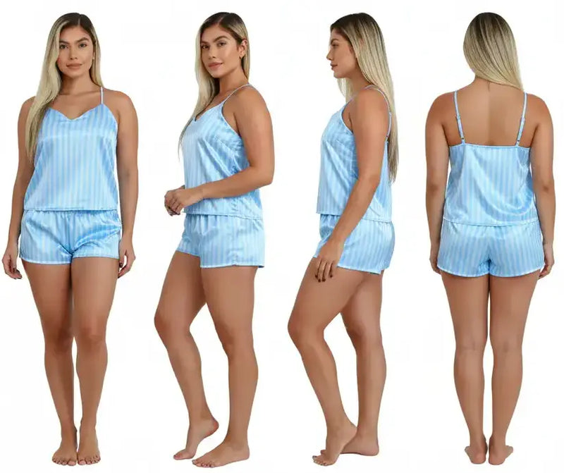 Esta pijama es una belleza 😍, la tela se siente fría y suave, perfecta para las noches calurosas. Me encantó que no se arruga y el color es igualito a la foto, súper delicado.