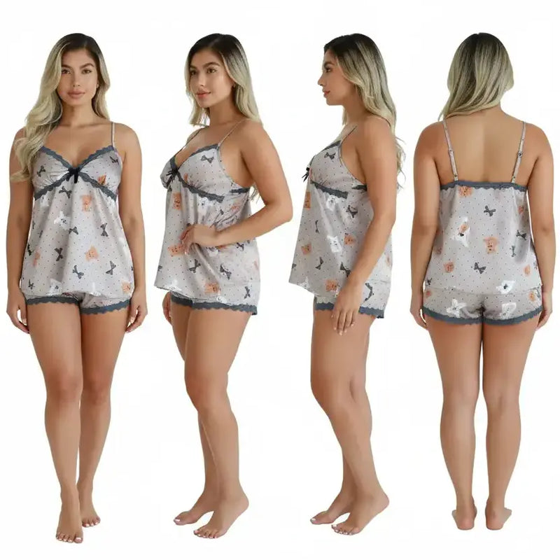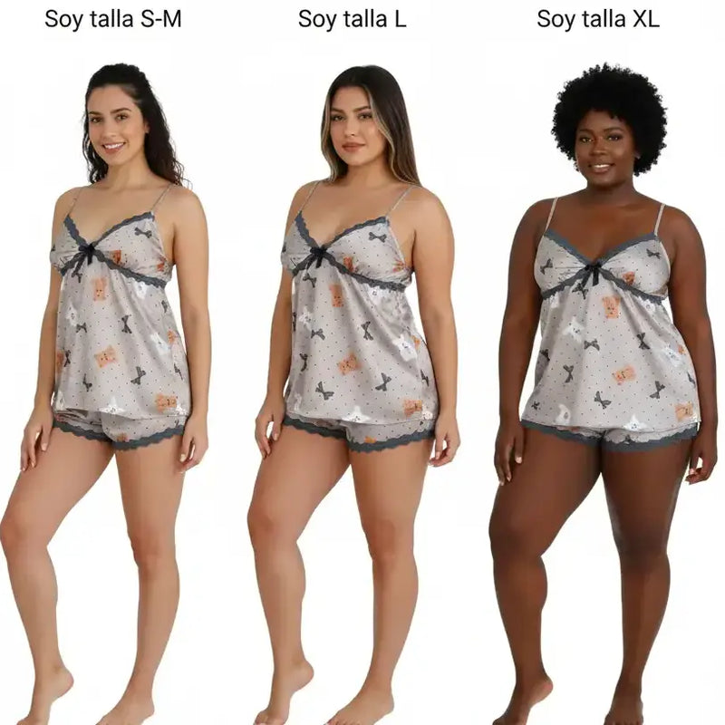 ¡El diseño es lo más tierno que he visto! Esos conejitos y ositos son adorables, y el color neutro es muy favorecedor. La tela de satín es justo lo que necesitaba para el calor de Barranquilla; es tan fresca y suave que se siente como si no llevaras nada puesto. Además de ser súper cómoda, el toque del encaje gris oscuro le da un aire coqueto y elegante, no solo parece una pijama infantil. La talla es fiel a las medidas, y el top es bastante holgado, lo que permite moverse con total libertad.