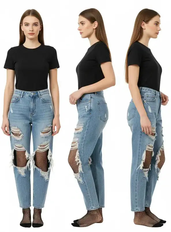 Me encantaron estas medias de malla. Son súper cómodas, no se enredan y le dan un toque diferente a cualquier outfit. Las usé con jeans rotos y se ven increíbles, justo como en la foto