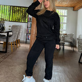 El conjunto me encantó, es muy cómodo y la tela se siente suave por dentro, perfecta para los días frescos. La talla M me quedó ideal, ni muy ajustada ni muy suelta. Se nota que está bien hecho y el diseño se ve moderno sin perder el toque relajado