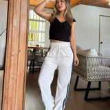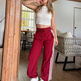 Son súper cómodos y el estilo con las franjas es muy moderno. La tela se siente de buena calidad y son perfectos tanto para hacer ejercicio como para un look casual en el día a día. La talla S-M me quedó ideal, justo como esperaba