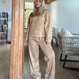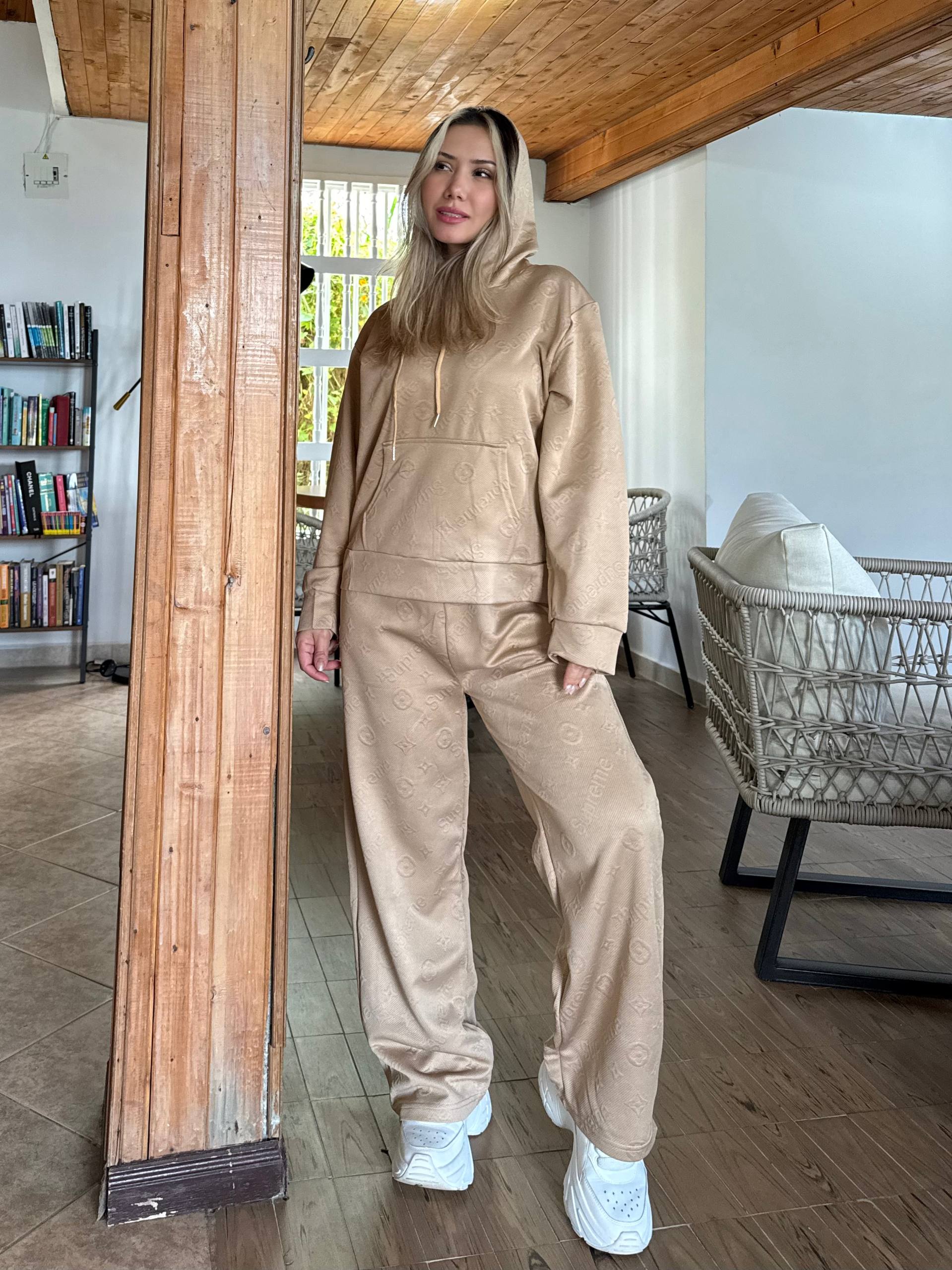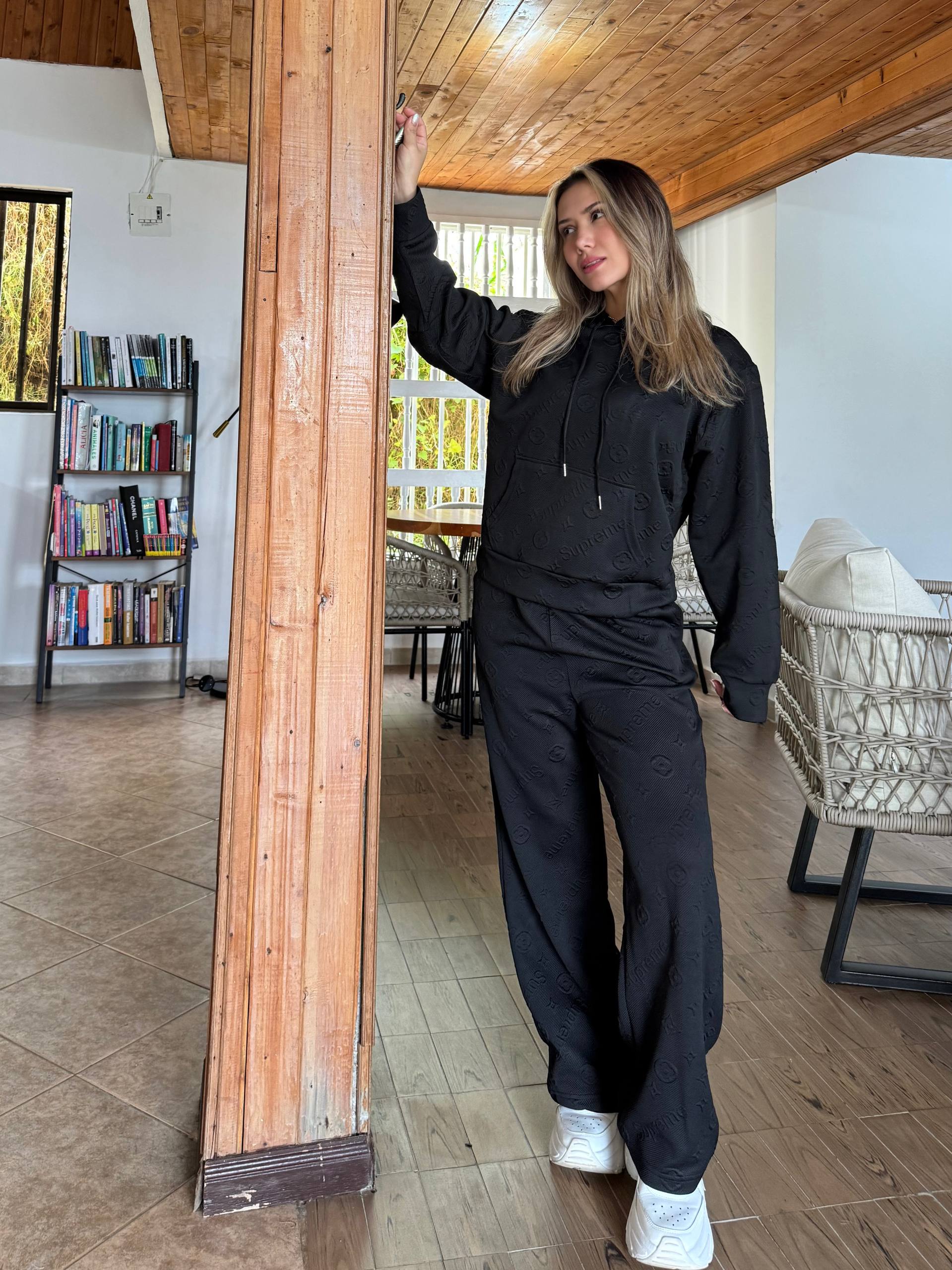 Diseño: Conjunto tipo sudadera compuesto por buzo cerrado y jogger con cintura ajustable, ambos de corte relajado y acabados , ideales para un estilo casual y moderno.