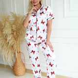 Diseño: Conjunto de pijama de dos piezas con blusa tipo camisera de manga corta y botones frontales +Pantalón fluido con cintura elástica para mayor comodidad.